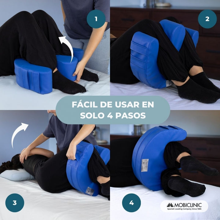O uso da almofada Folk é intuitivo : basta deslizar as pernas do paciente pelas aberturas da almofada, colocar uma mão na cintura ou nas costas do paciente e, com a outra, segurar uma das alças laterais para girar a almofada facilmente. Esta operação pode ser realizada em casa, em instituições de saúde ou em viagens, graças ao seu peso leve e tamanho compacto .