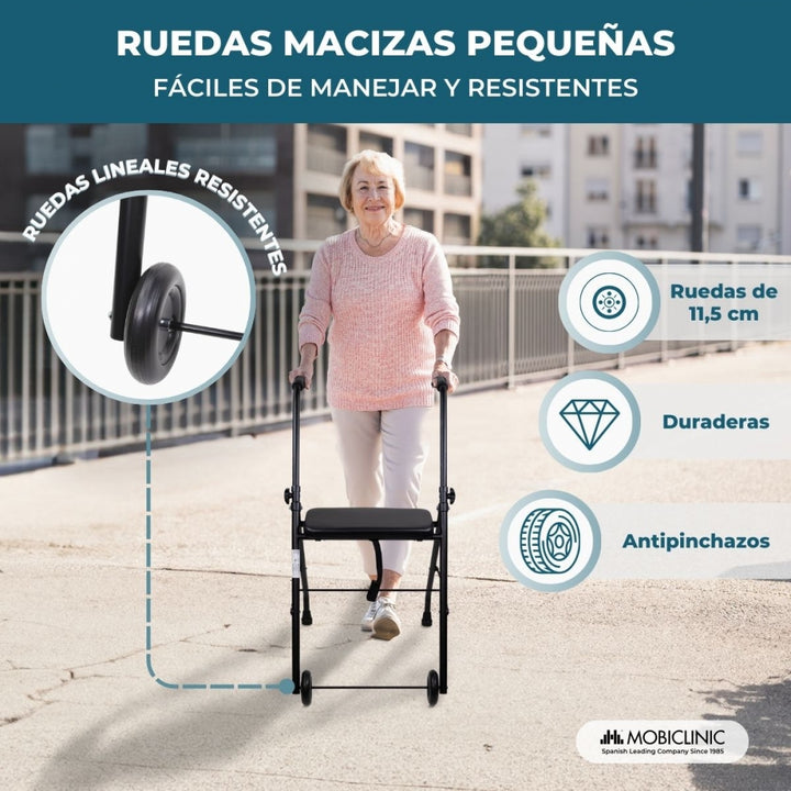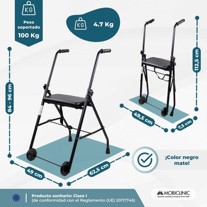 Além disso, por ser um andador dobrável , é fácil de dobrar graças ao seu eixo central. Seu design preto confere a este andador para idosos a elegância que você sempre desejou.