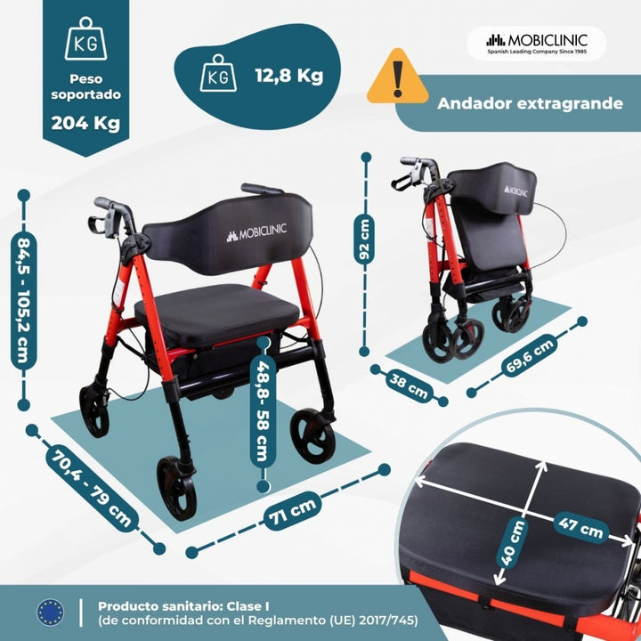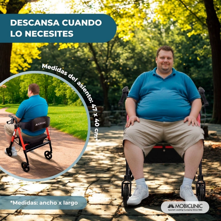 El andador bariátrico Madeira de Mobiclinic está diseñado para proporcionar máxima estabilidad, resistencia y comodidad. Con una capacidad de carga de hasta 204 kg, supera ampliamente a los modelos estándar (100120 kg), siendo ideal para usuarios con sobrepeso o que buscan mayor seguridad en sus desplazamientos.