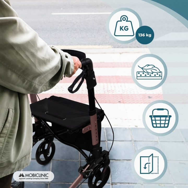 Características técnicas del andador plegable Trajano Oro Rosado: