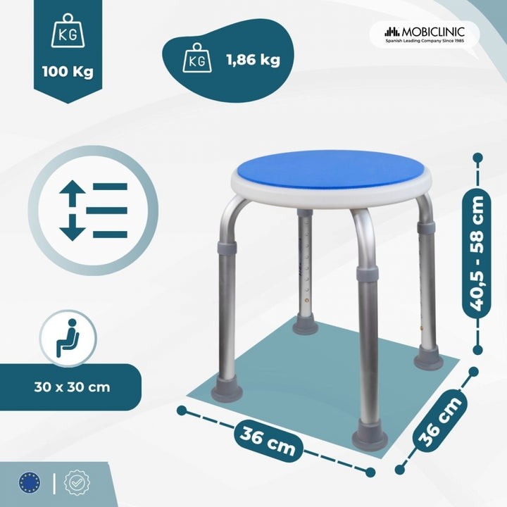 O banco de chuveiro Foco foi projetado para garantir segurança, autonomia e conforto no banheiro. Seu botão ajustável permite ajustes rápidos e sem ferramentas em oito alturas, variando de 40 a 57,5 cm. Essa faixa de ajuste permite personalizar a posição do assento, facilitando uma higiene mais confortável e personalizada para cada usuário.