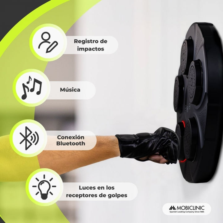 O aparelho inclui luvas de boxe para que você possa começar a treinar imediatamente. Além disso, os receptores de socos possuem luzes vermelhas que acendem de acordo com a velocidade. O visor digital permite que você acompanhe seu desempenho, mostrando o número de socos desferidos durante cada sessão. No visor, você também pode ligar e desligar o aparelho e ajustar a velocidade do treino.