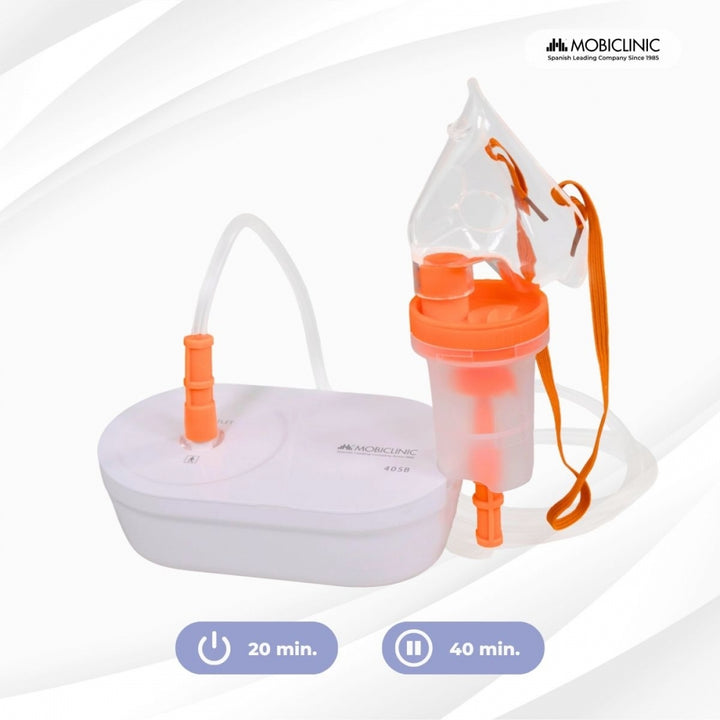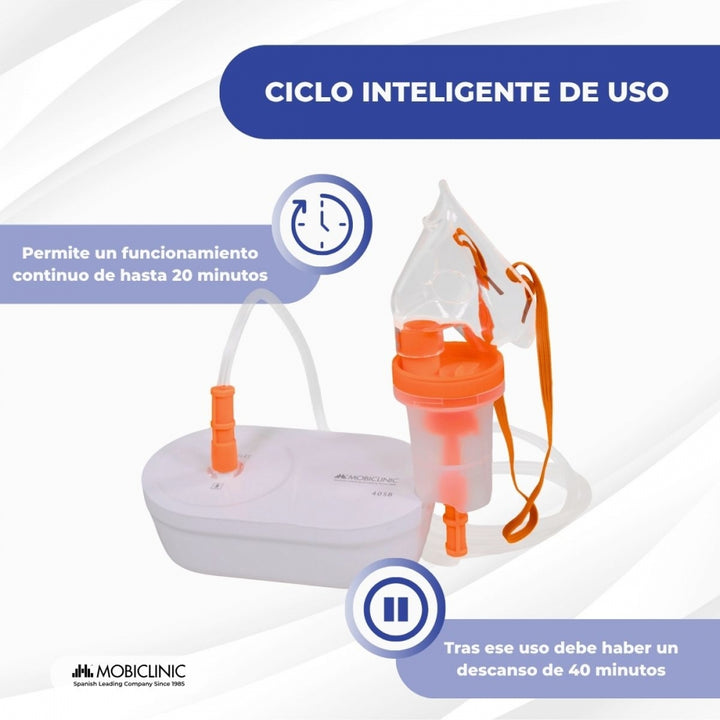 Oferece uma taxa de nebulização superior a 0,2 ml/min e opera em ciclos de até 20 minutos, seguidos por um período de descanso de 40 minutos, garantindo sessões confortáveis e evitando superaquecimento. Além disso, é muito silencioso graças à sua tecnologia de ar comprimido.