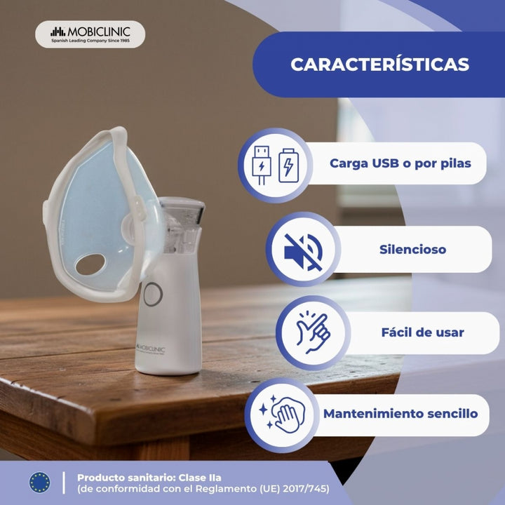 Este nebulizador pode ser usado sem fio, utilizando pilhas, ou conectado a uma tomada via USB (inclusa). Isso o torna ideal para uso em qualquer lugar e garante uma operação segura. Sua operação é intuitiva, com apenas um botão, adequada para qualquer usuário. Além disso, seu sistema "push" permite a fácil remoção do copo medidor, garantindo limpeza e higiene adequadas.