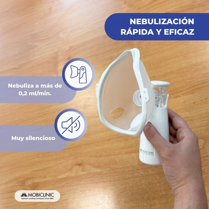 Este kit completo e adaptável inclui um bocal, uma máscara para adultos e uma máscara para crianças, ideal para toda a família. Seu funcionamento silencioso o torna ideal para tratamentos noturnos ou para uso com crianças. Sua nebulização é uniforme e eficaz, com velocidade <0,2 ml/min, garantindo o máximo aproveitamento da medicação.